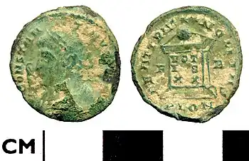 A copper alloy coin of Constantine the Great bearing the reverse inscription VOTIS XX