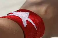 - (strip of material worn around the wrist): wrist wrap, wriststrap, wristwarmer